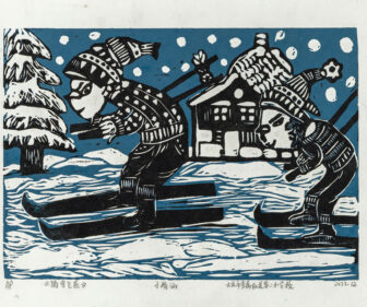 雪の中を飛ぶツバメ