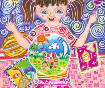 家族といっしょにテラスで凧あげ