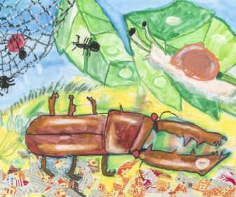 雨やどりしているクワガタ